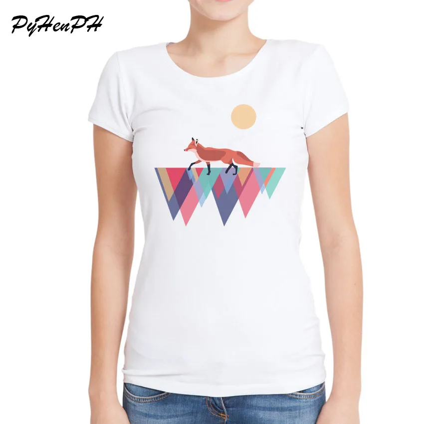low cost 2018 New White T Shirt Women Fashion Fox Print Summer Style Short Sleeve T-shirt For Female Funny P