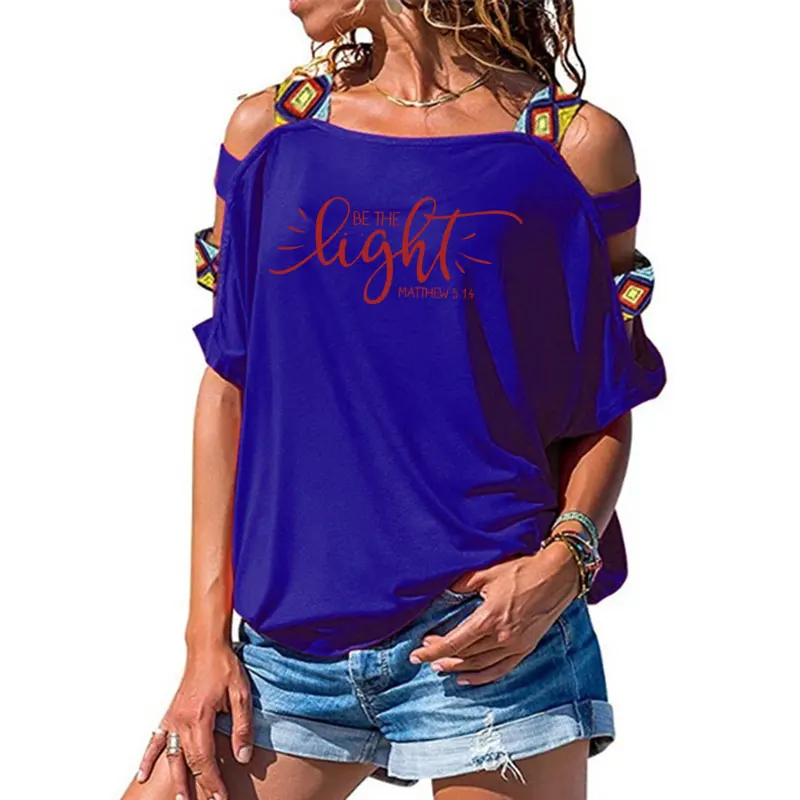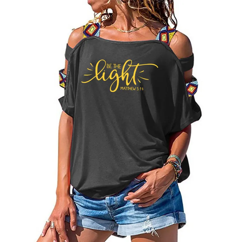 Best Be the Light Matthew 5:14 T-shirt Women Catholic Christian Tshirts Summer Graphic Religious Hollow