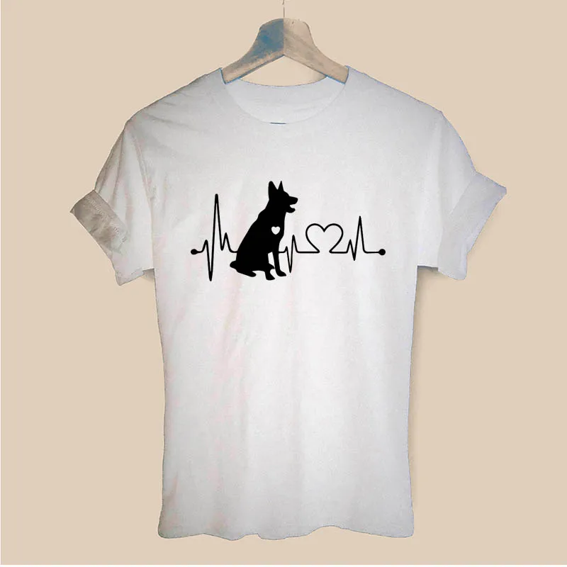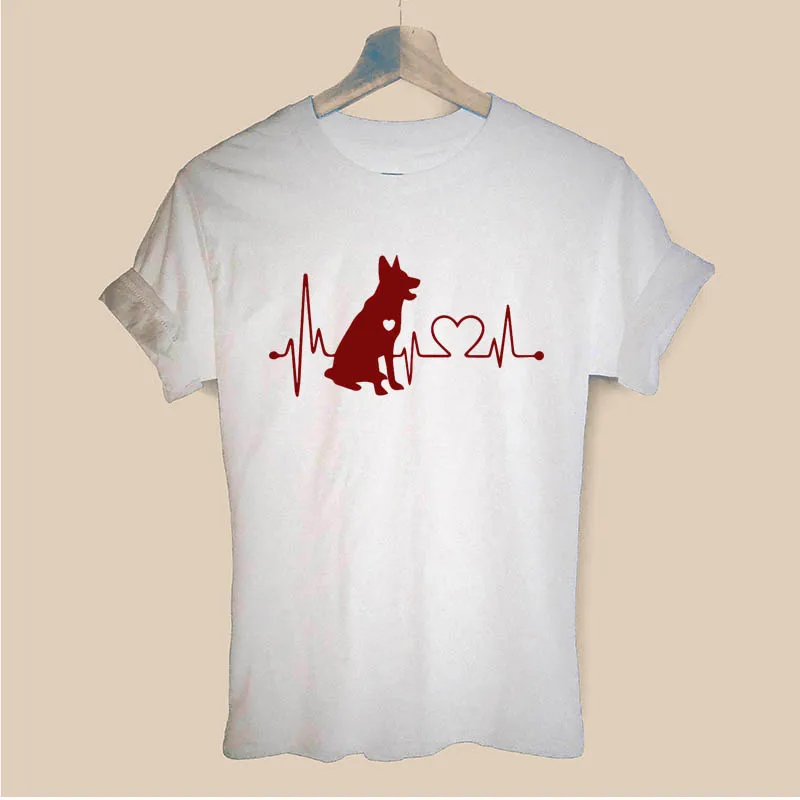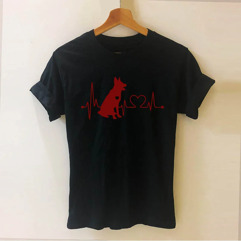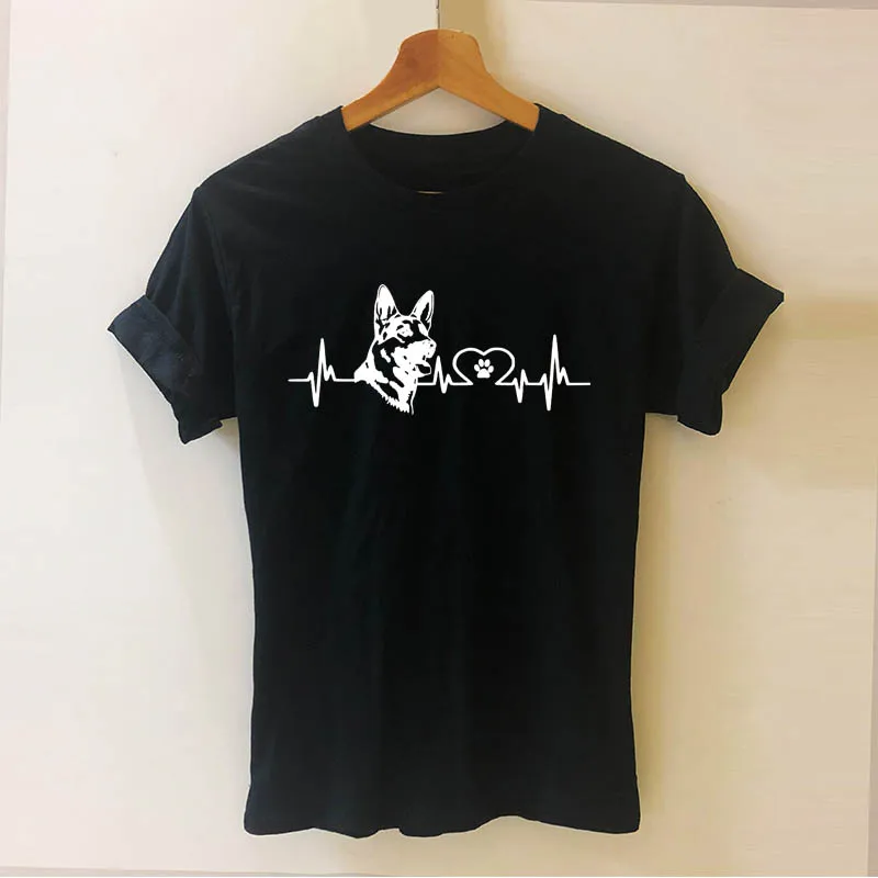 lower price German Shepherd Heartbeat Cartoon Dog Letters Print Women Short Sleeve Tshirt Casual Cotton Hipster